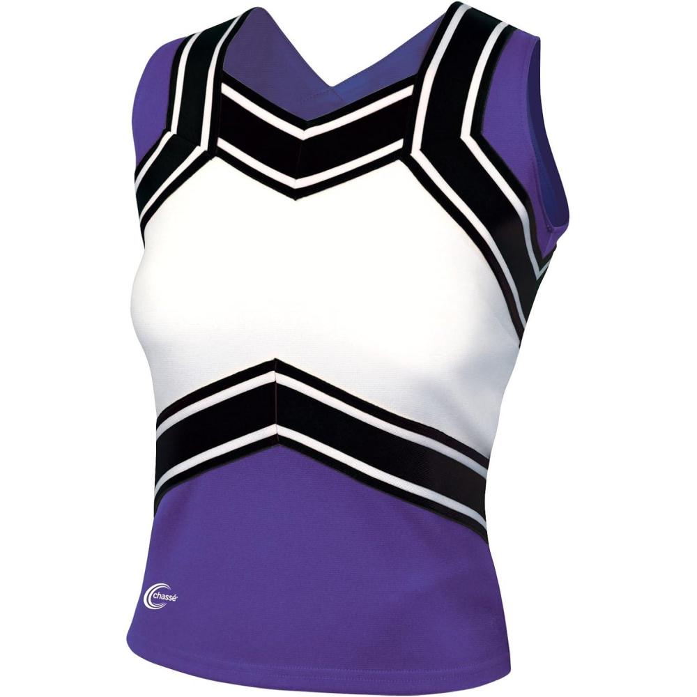 chassé Girls’ Blaze Shell Top – Adult Sized Cheerleading Uniform Shirt(Purple/White/Black)