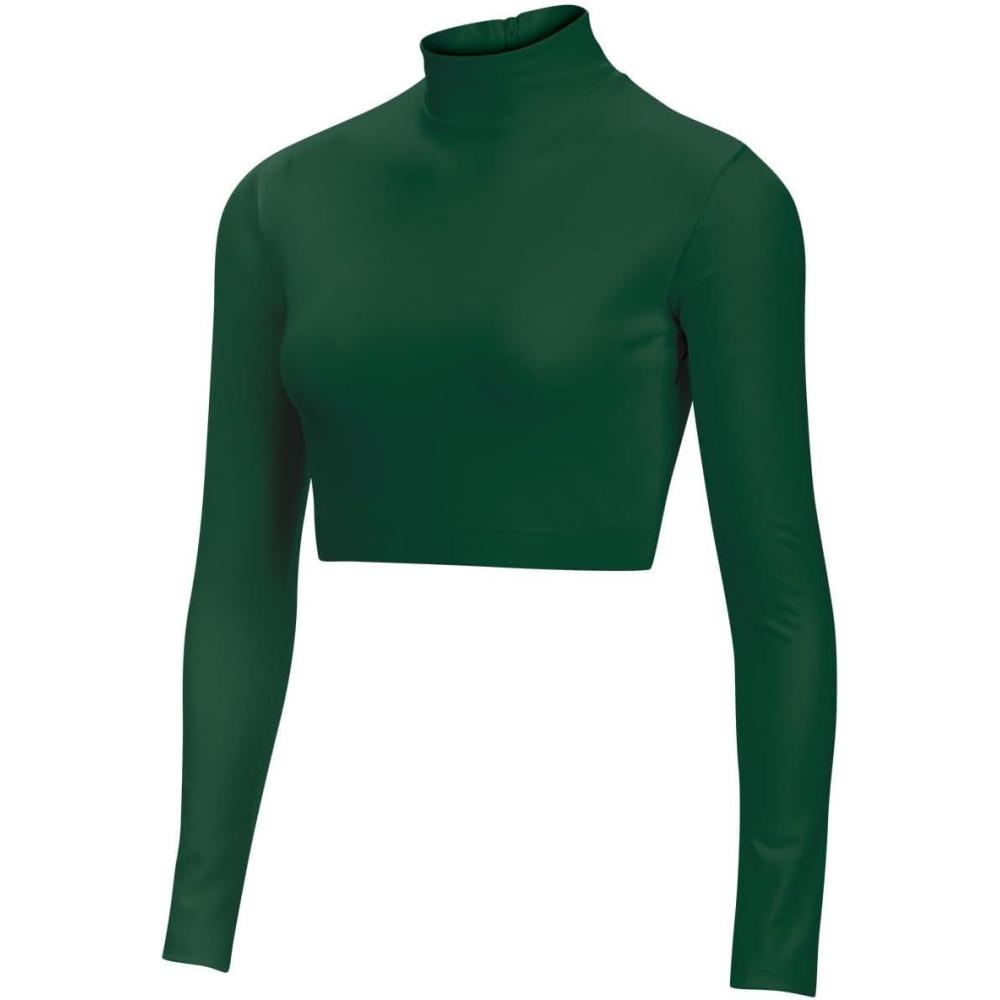chassé Girls Long Sleeve Cropped Bodysuit, Mock Neck Cheerleading Shirt Youth Sizes(Forest Green – Youth Sizes)