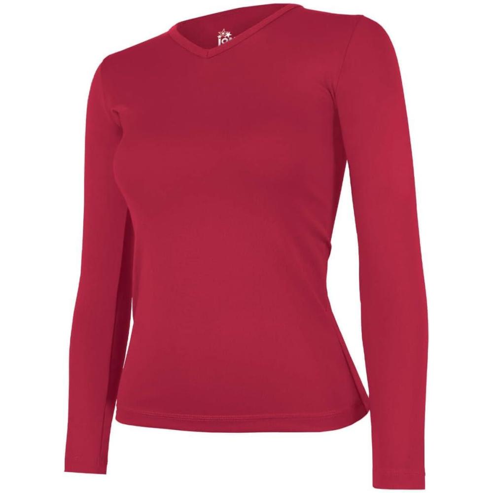 Ion Cheer Fitted V-Neck Long Sleeve Practice Top | Soft and Stretchy Practice Cheerleading Shirt(Red – Youth Size)