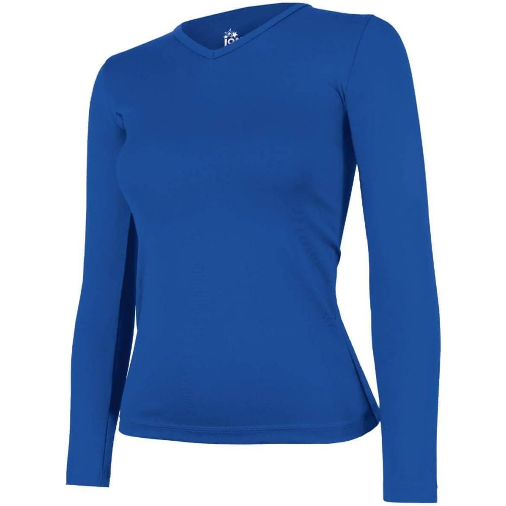 Ion Cheer Fitted V-Neck Long Sleeve Practice Top | Soft and Stretchy Practice Cheerleading Shirt(Royal – Youth Size)